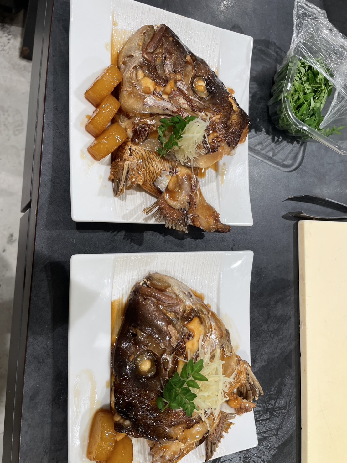 寿司コース5日目では、タイ(鯛)の三枚おろしや皮引き、桂むきなどを実践。包丁の感覚が少しずつ安定し、午後は90貫の握りにも挑戦。掃除や衛生管理も含め、職人としての基礎を学ぶ一日となりました。
