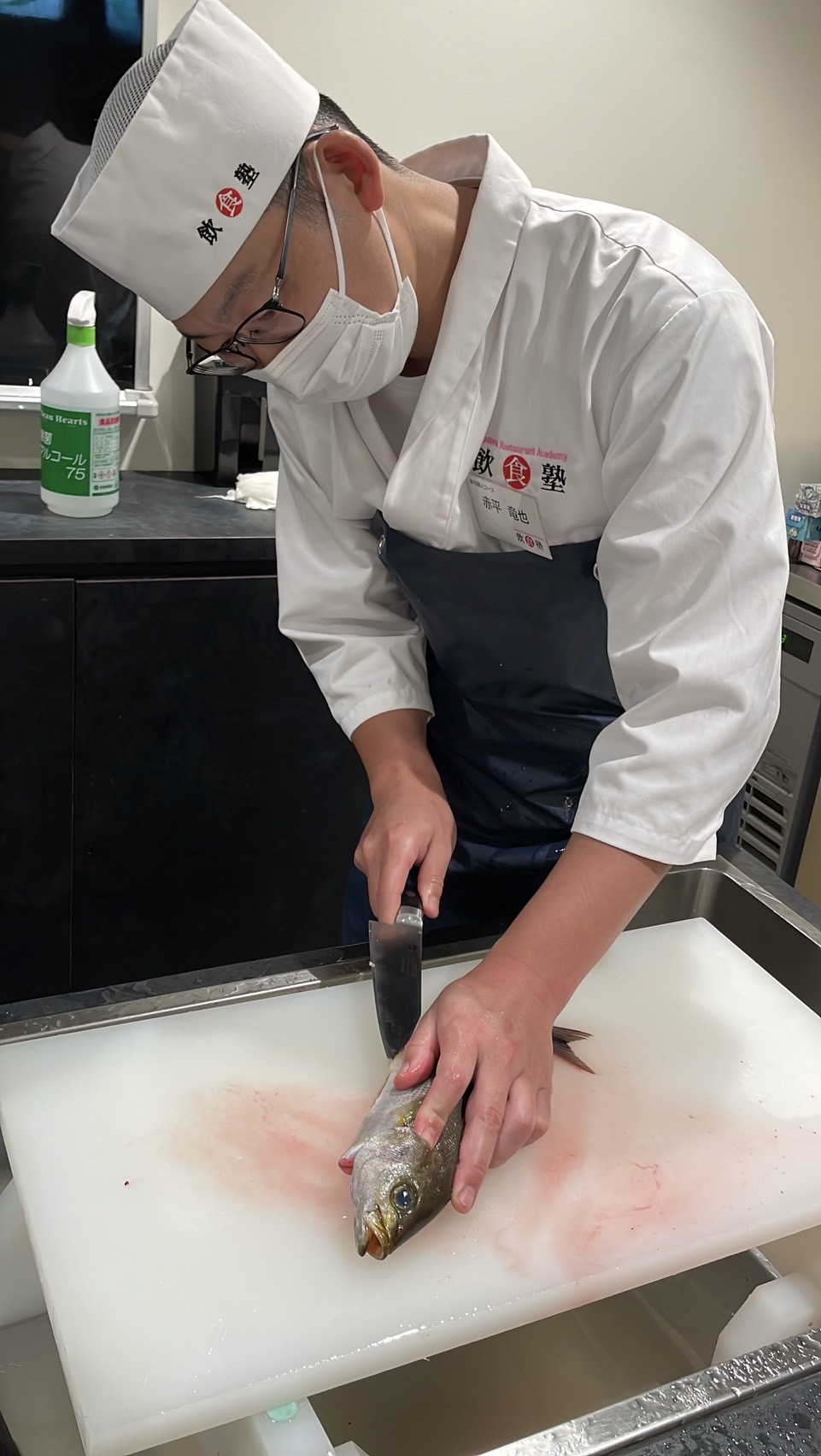 シマアジの三枚おろし!短期実践の寿司学校「飲食塾」寿司職人コース