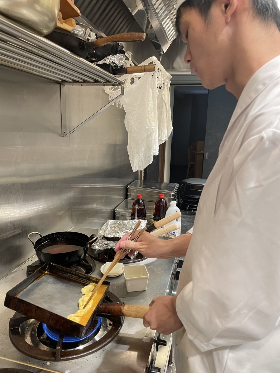 寿司コース38日目、ランチ営業3日目は3組同時対応に挑戦。細かな改善を意識する姿に成長を実感しました。午後はだし巻き玉子を大きめのフライパンで練習し、新たな課題も見つかった一日です。