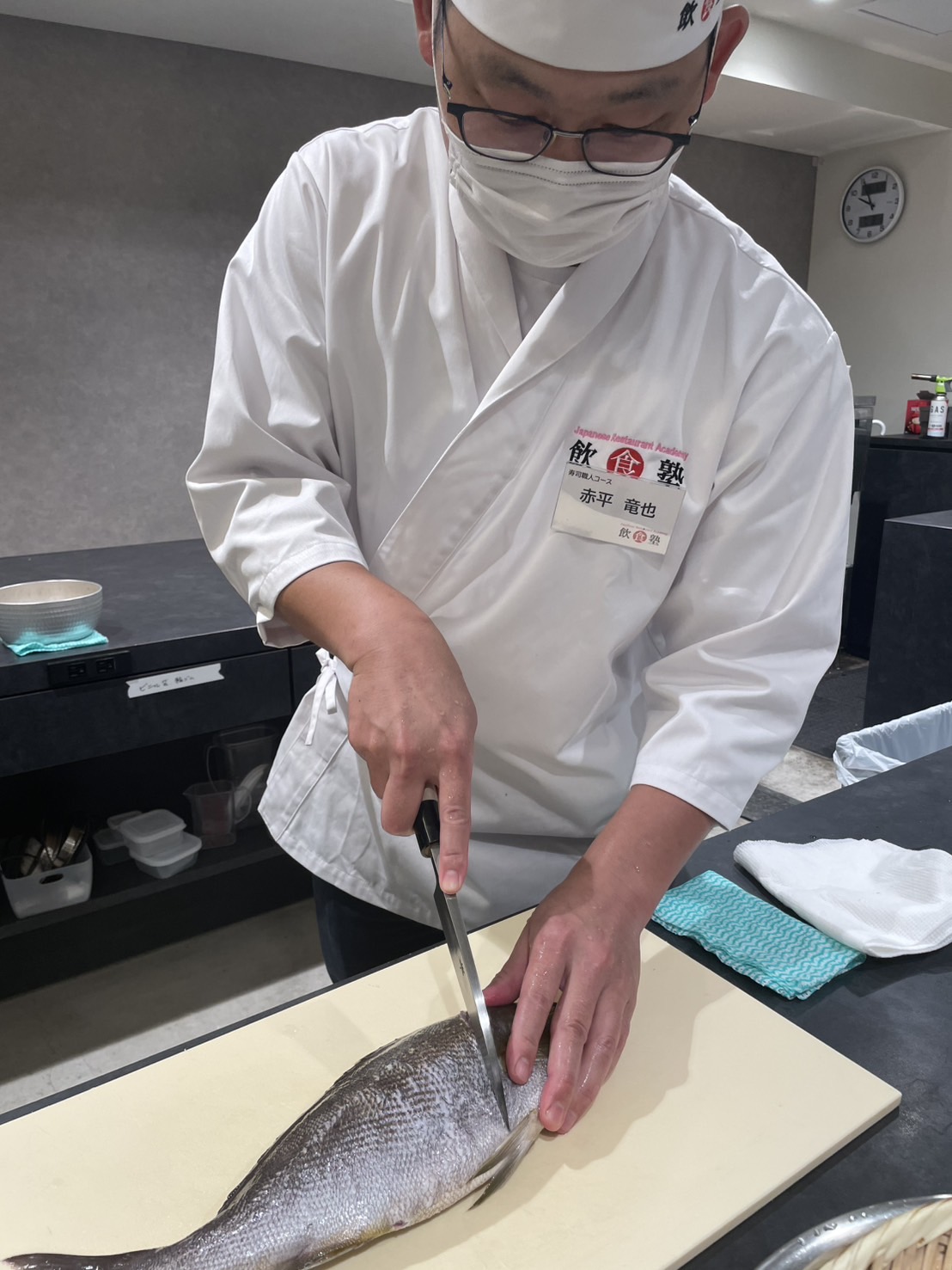 タイとイサキのおろし!短期実践の寿司学校「飲食塾」寿司職人コース8日目