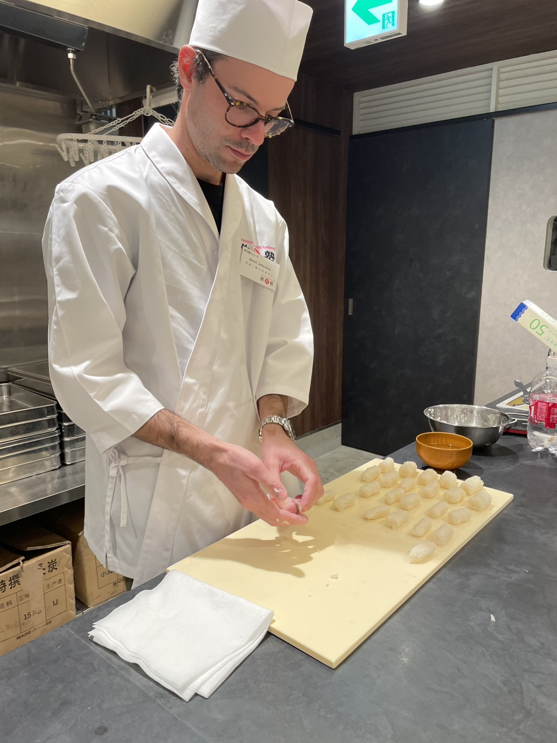 【寿司コース9日目|貝ネタの授業】ホタテ、ホッキ貝、平貝、牡蠣の仕込みから握りまでを実践。500貫突破で技術も着実に向上中。少人数制だからこそできる細かな指導で、一人ひとりの成長をしっかりサポートしています!