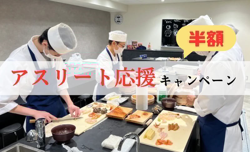 短期実践の料理人スクール「飲食塾」では、アスリートのセカンドキャリアを応援するべく、「寿司職人コース」の受講料を半額とするアスリート限定の特別キャンペーンを実施します。