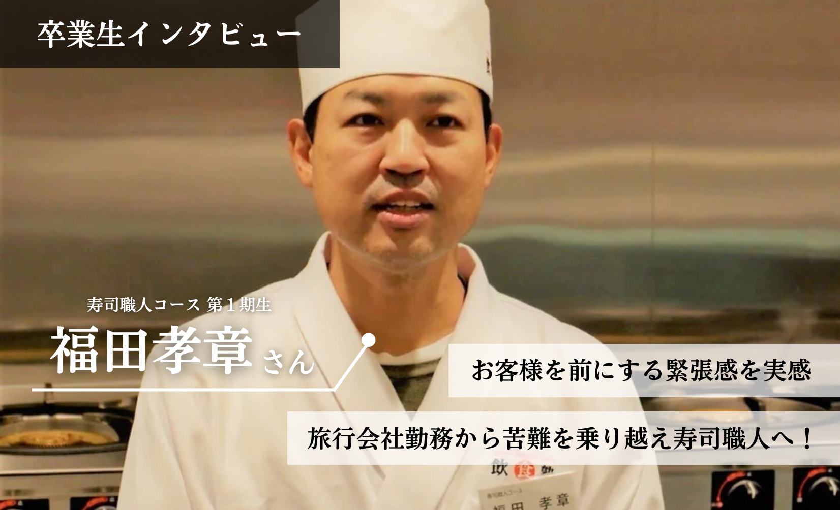 第1期生 福田孝章さん(2022年12月卒業) 寿司職人になることを決めたきっかけを教えてください。 入塾前は