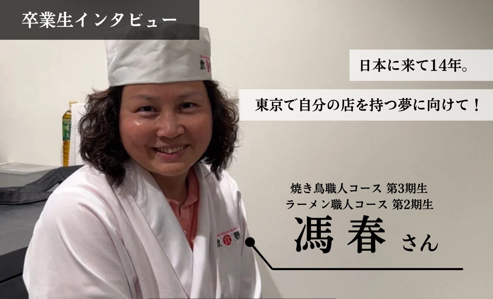 焼き鳥職人コース 第3期生/ラーメン職人コース 第2期生 馮 春さん(2023年6月卒業) 入塾を決めた理由