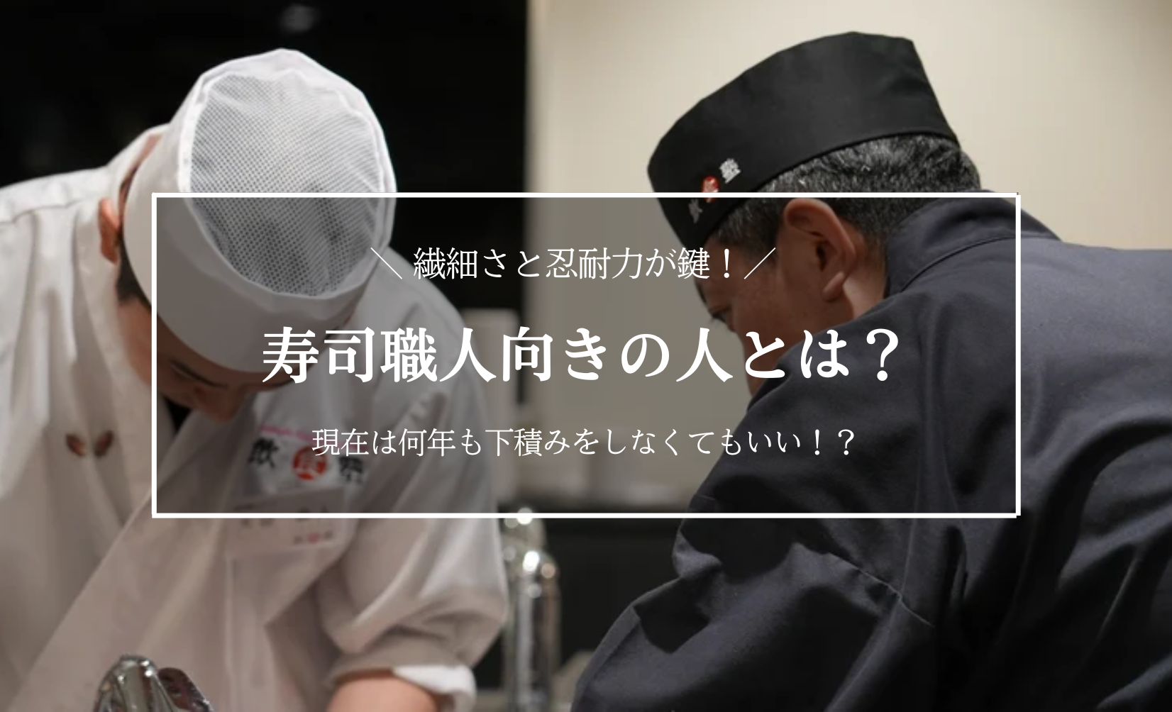 日本の食文化を支える“寿司職人”。そんな寿司職人に向いている人とは、どんな人なのでしょうか?この記事では、寿司職人に向いている人の特徴と、寿司職人を目指すのにおすすめの寿司学校をご紹介します。 寿司職人に向いている人の特徴は?