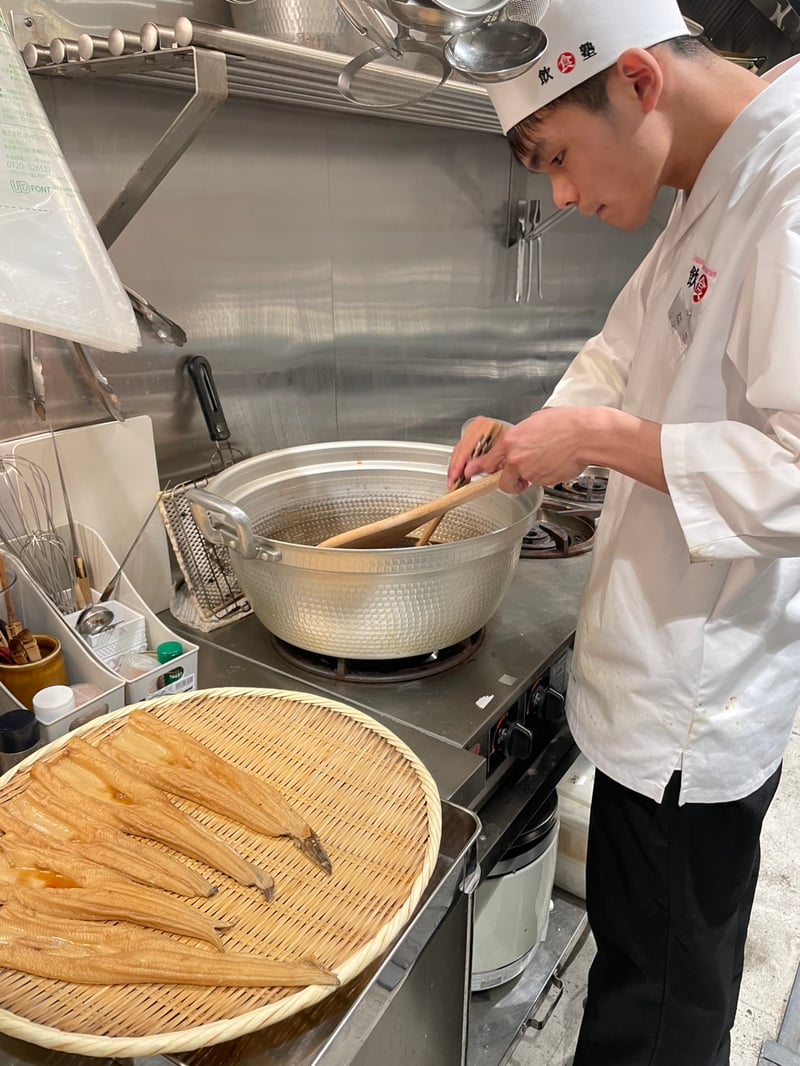 午後は穴子の仕込み。今日は前回の倍以上の本数に挑戦しました。最初は苦戦しつつも、後半にはしっかり形も整ってきて、仕上がりも安定してきた様子。