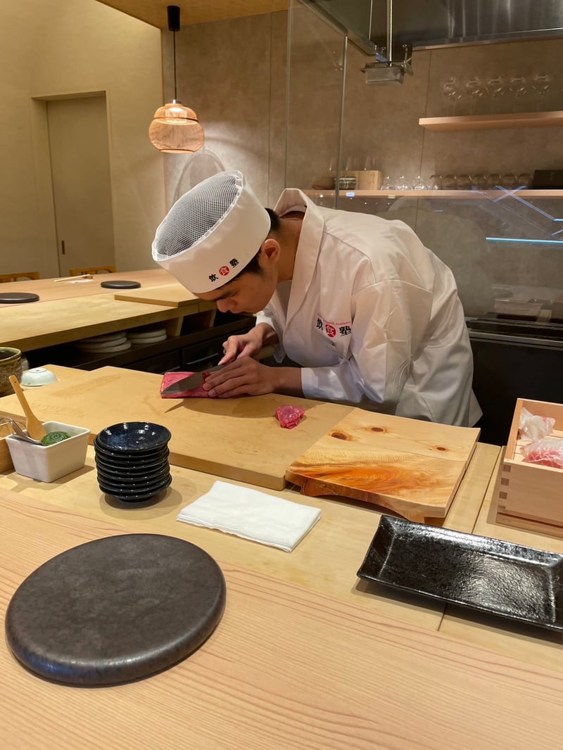 巻物に関してはまだ少し苦手意識がある様子。なので、シャリの広げ方や形の整え方などをもう一度基本からおさらいしました。何度でも繰り返して、自信を持って巻けるようになるまで、じっくり付き合います。