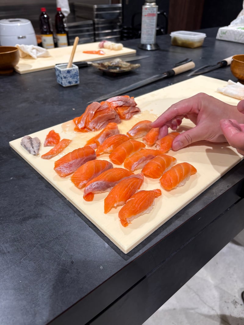 今日はサーモンを使って実際に握ってもらいました。ネタがあると難易度は上がりますが、それでも85カン握れました。数字だけじゃなく、手の動きがどんどん良くなってきているのが何よりの成長です。