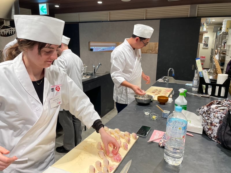 フランス人寿司コース8日目|タイの三枚おろしと握り練習、初めて納豆巻きを食べる!