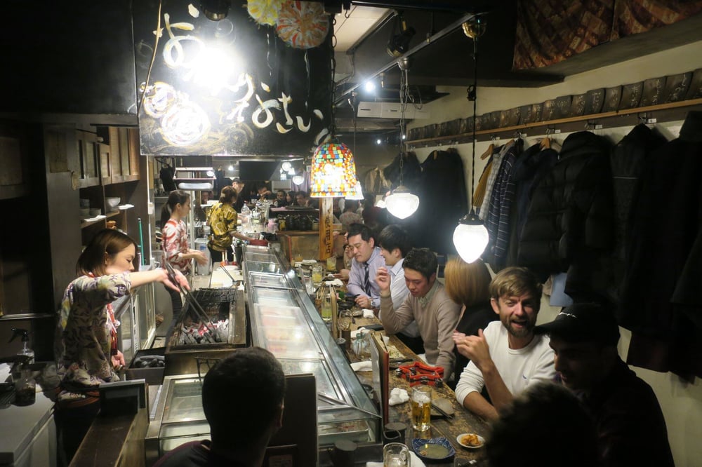 しばらくして、それが始まった。店内の照明が消され、カウンター越しのオープンキッチンがステージとなり、スポットライトを浴びた女性従業員の数人が歌って踊るパフォーマンスを行った。途中でお客さまのバースディをお祝いした。あれやこれやで10分が経過してこのイベントは終了したのだが、店の空気は高揚して高いテンションで営業が再開した。
