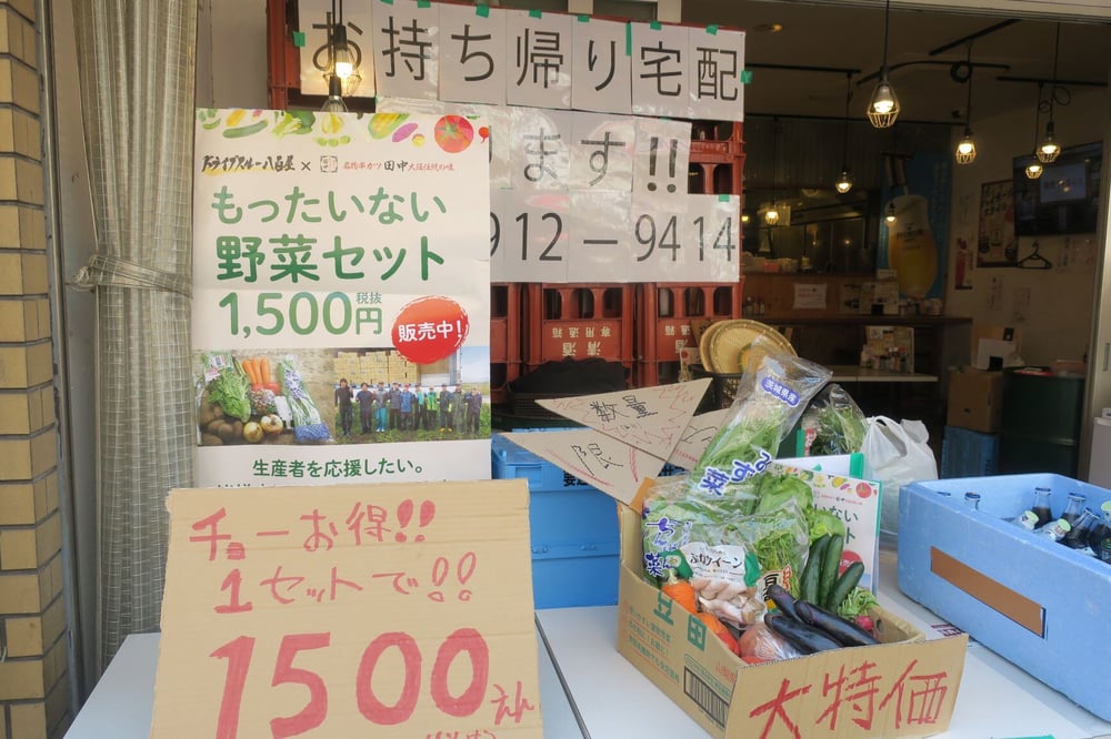 筆者は4月26日に店頭で野菜の販売を始めた(株)ゴールデンマジックの「酒場フタマタ」西池袋店を訪ねたが、同店の野菜もフードサプライから仕入れたものだ。しかも、「串カツ田中」西池袋店と一軒隔てて隣り合わせである。野菜売場が一挙に2カ所できたことになる。