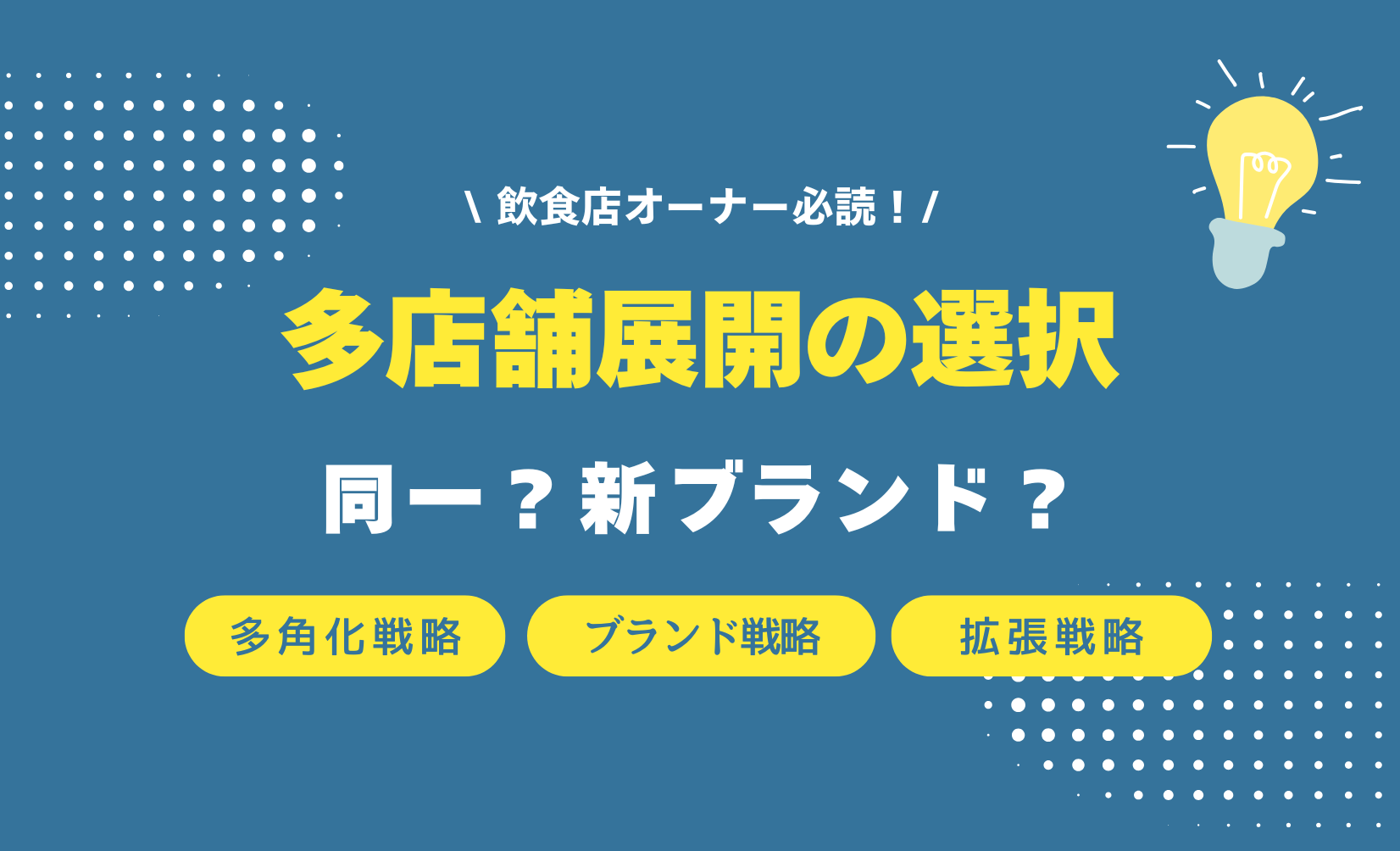 飲食店を1店舗成功させた後、次の課題として訪れるのが「多店舗展開」。