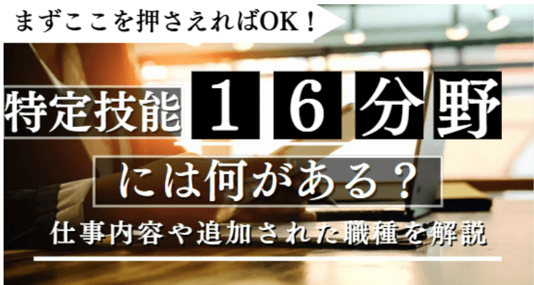 特定技能は16の産業分野が対象となっています。飲食業、建設業、介護業、外食業、農業など、多岐にわたる分野で外国人労働者が活躍しています。