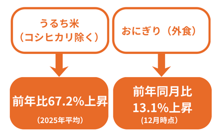 うるち米(コシヒカリ除く):前年比67.2%上昇(2025年平均)