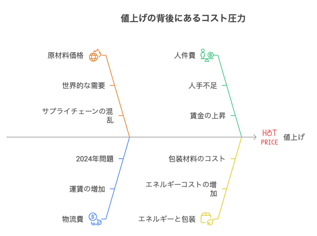 今回の値上げの背景には、複合的なコスト上昇 がある。