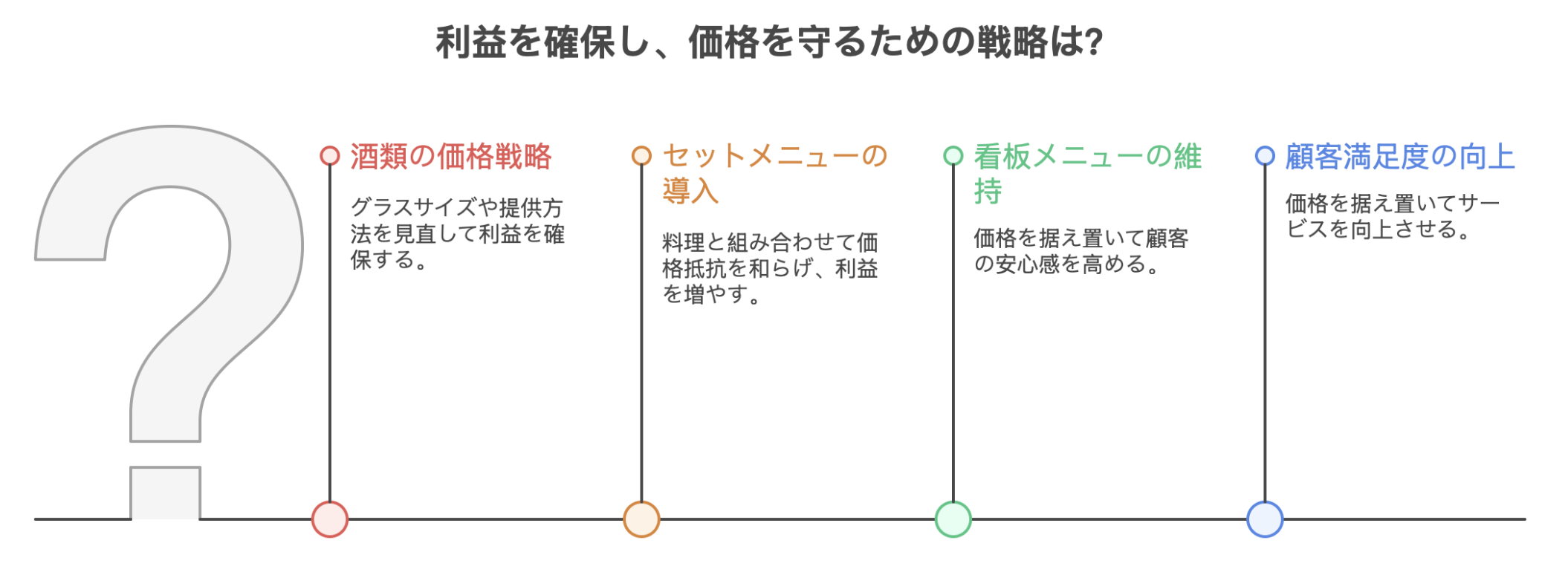 価格を据え置く代わりに、盛り付けや提供スピード、説明の工夫によって満足度を高めることで、値段以上の価値を感じてもらう余地は十分にある。