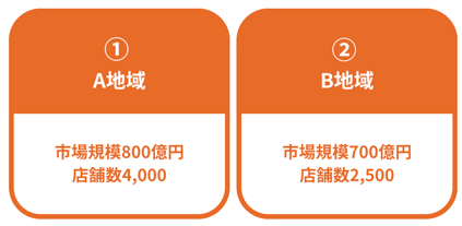 市場規模だけを見るとA地域の方が大きいにもかかわらず、1店舗あたりの取り分はB地域の方が800万円も多いという結果になります。
