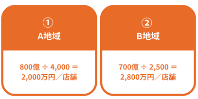 A地域:800億 ÷ 4,000 = 2,000万円/店舗