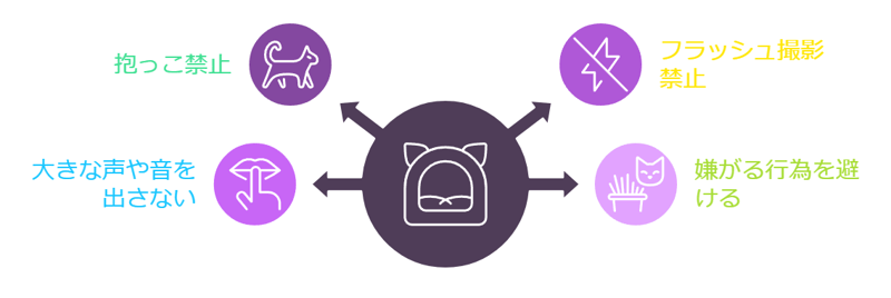猫にストレスを与えないよう、また、お客様に安全に楽しんでいただけるよう、猫とのふれあい方をルール化しましょう。