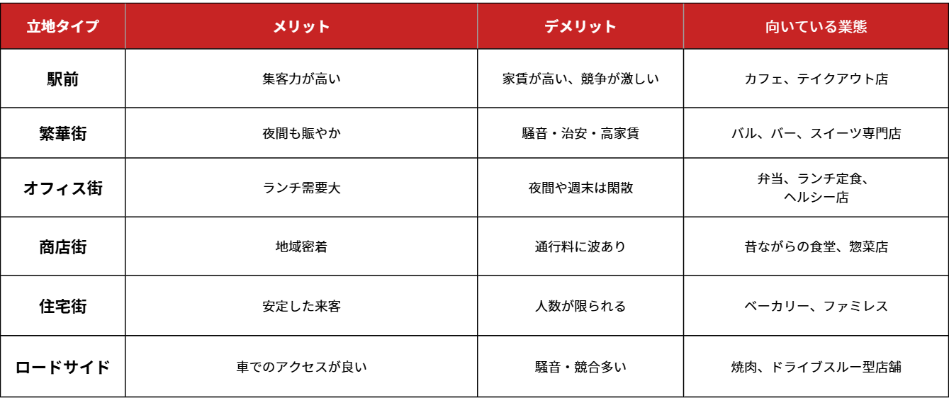 飲食店の物件探しでは、立地タイプを知っておくことも重要です。